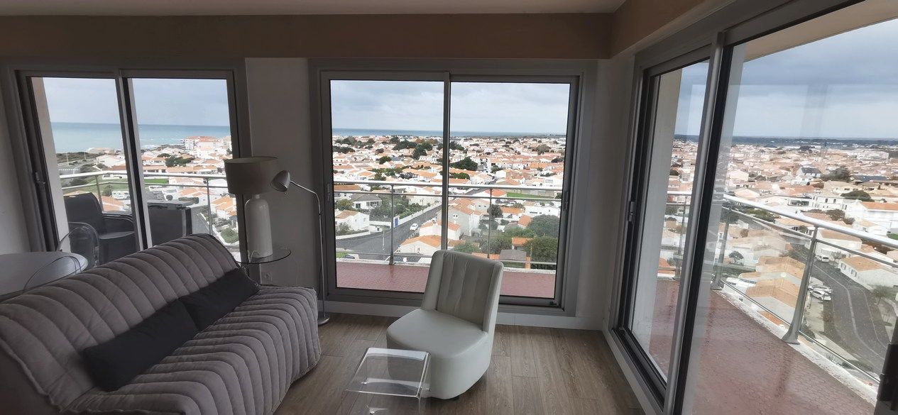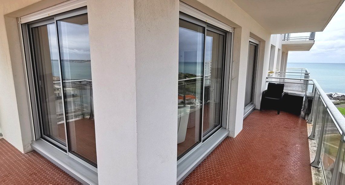 Baie vitree aluminium 3 rails 3 vantaux avec petits bois intégrés OLONNE FERMTURES PIERRE ET VACANCES les sables d'olonne