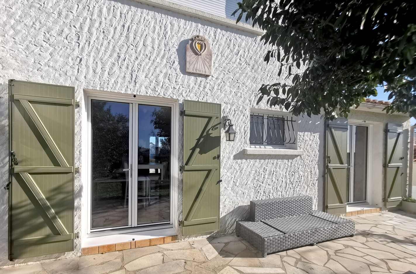 Menuiserie avec petits bois intégrés et volets battants avec persiennes olonne fermetures