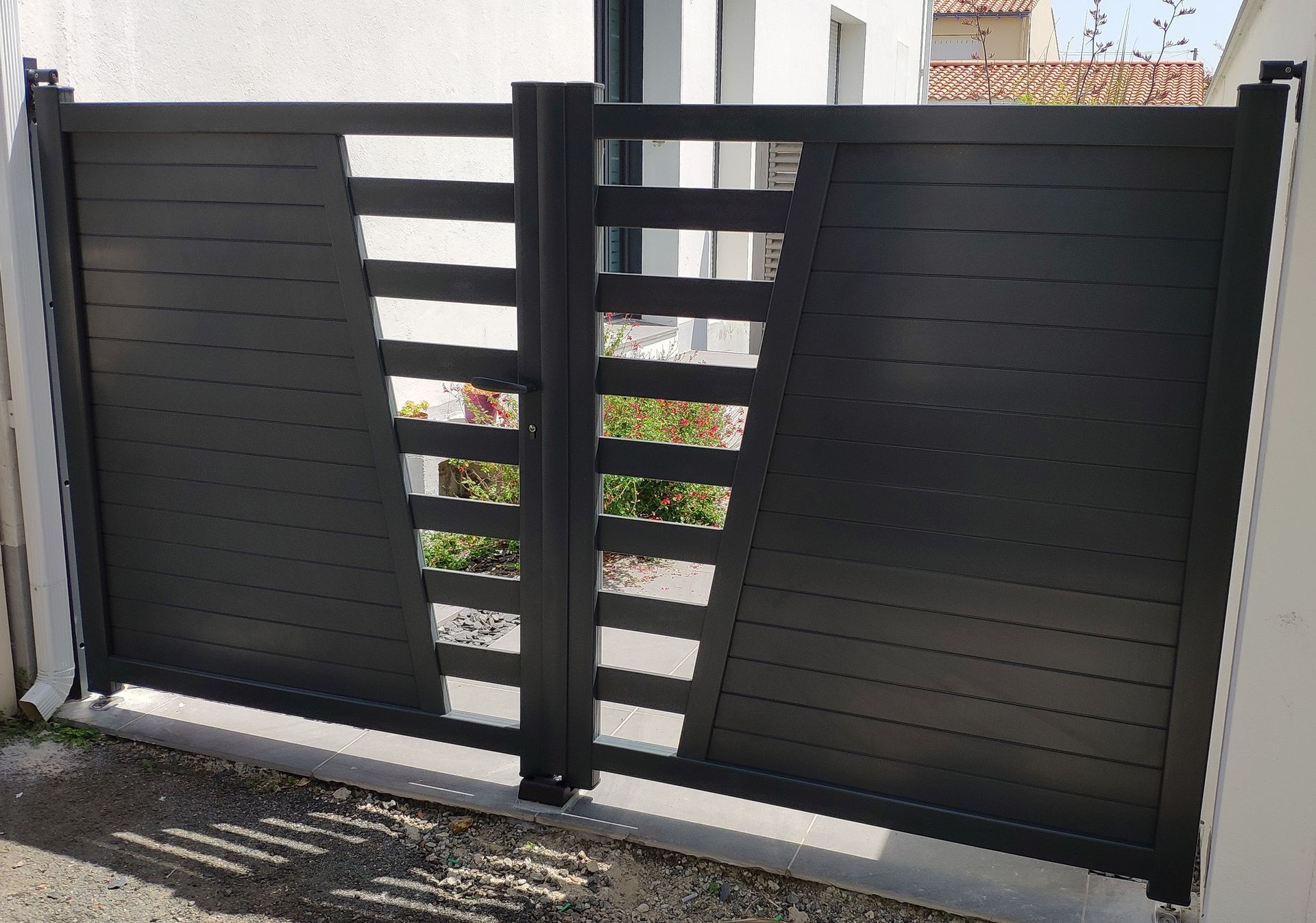 Portail battant aluminium semi ajoure couleur Olonne fermetures, Portail battant aluminium semi ajoure couleur Olonne fermetures olonne sur mer, Portail battant aluminium semi ajoure couleur Olonne fermetures les Sables d olonne, Portail battant aluminium semi ajoure couleur Olonne fermetures vendee, Portail battant aluminium semi ajoure couleur Olonne fermetures entreprise de menuiserie, Portail battant aluminium semi ajoure couleur Olonne fermetures artisan certifiee RGE, Portail battant aluminium semi ajoure couleur Olonne fermetures entreprise certifiee RGE.